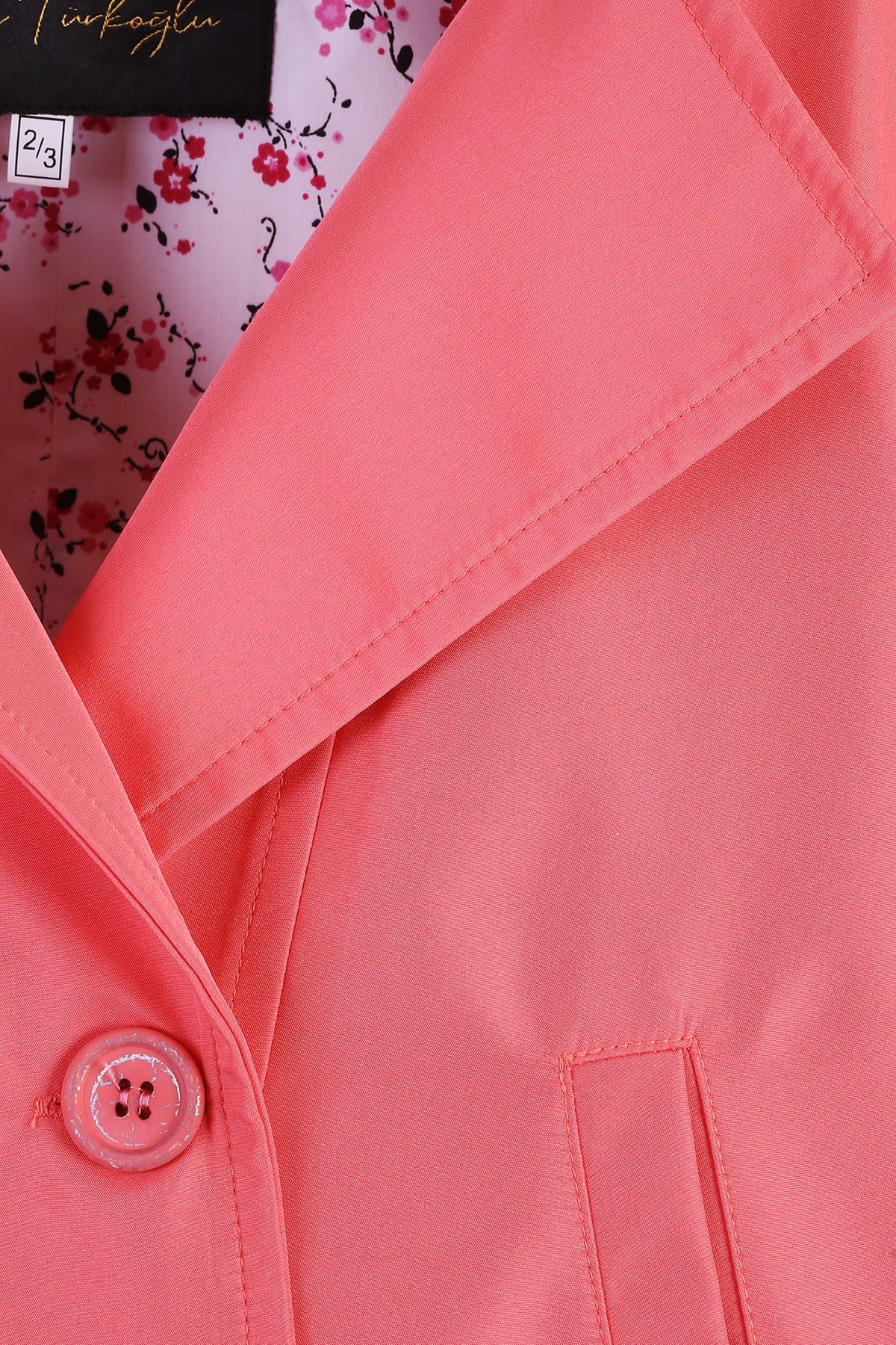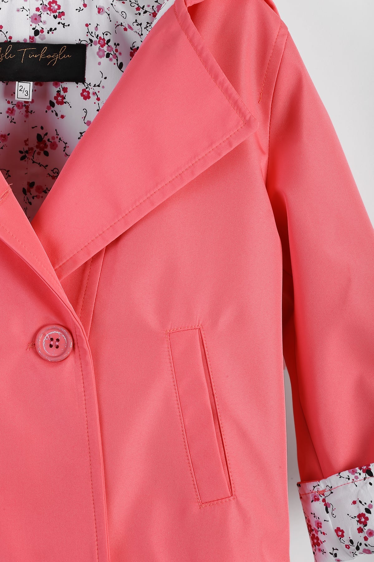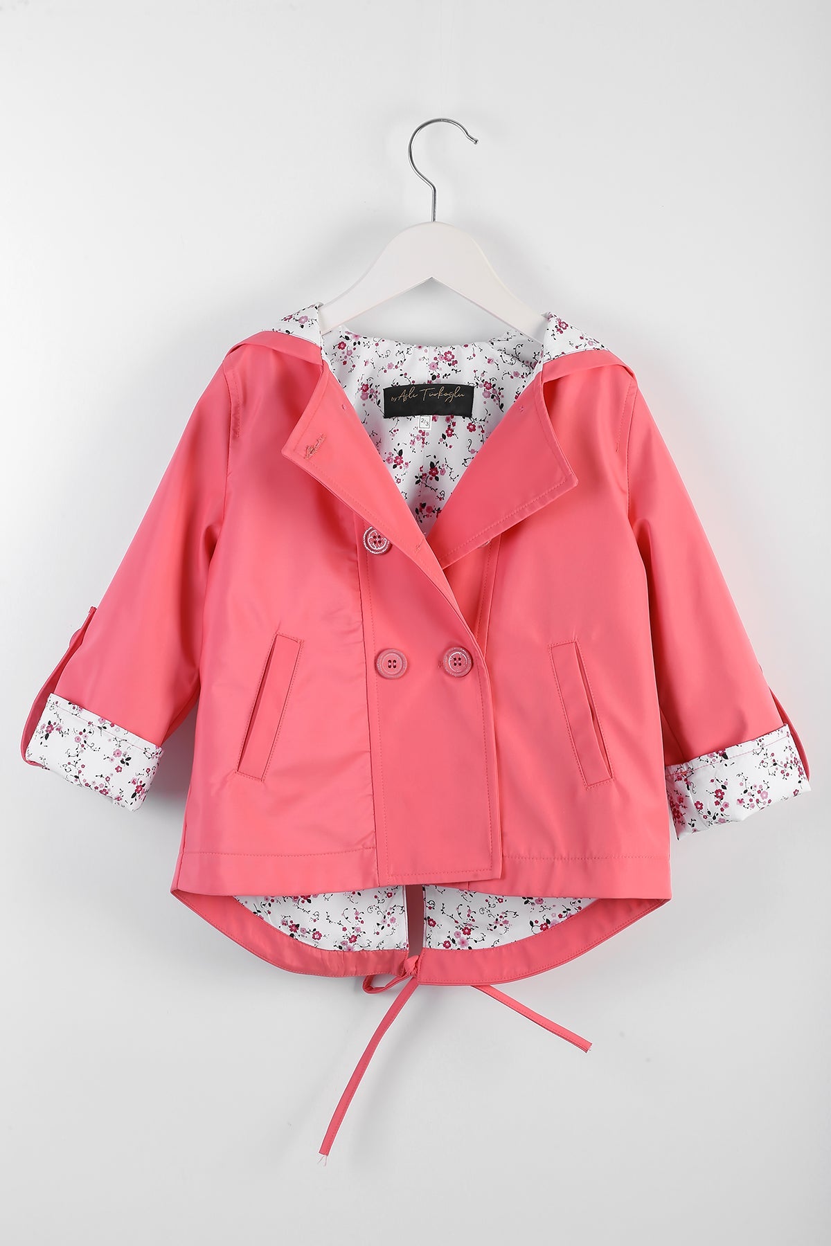 معطف مطر وردي للبنات مع بطانة منقوشة بالزهور - ملابس خارجية مقاومة للماء