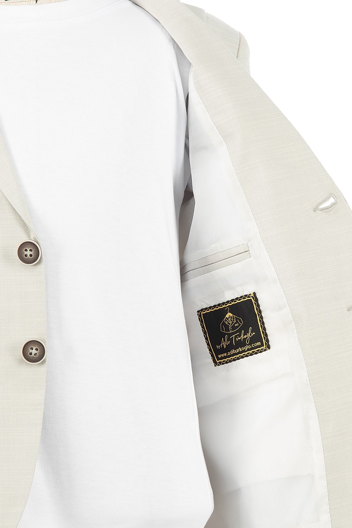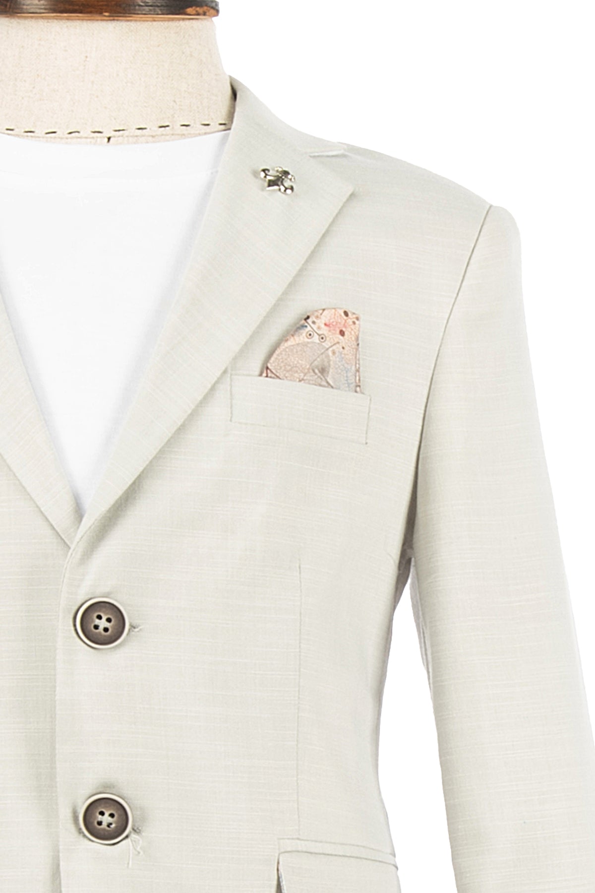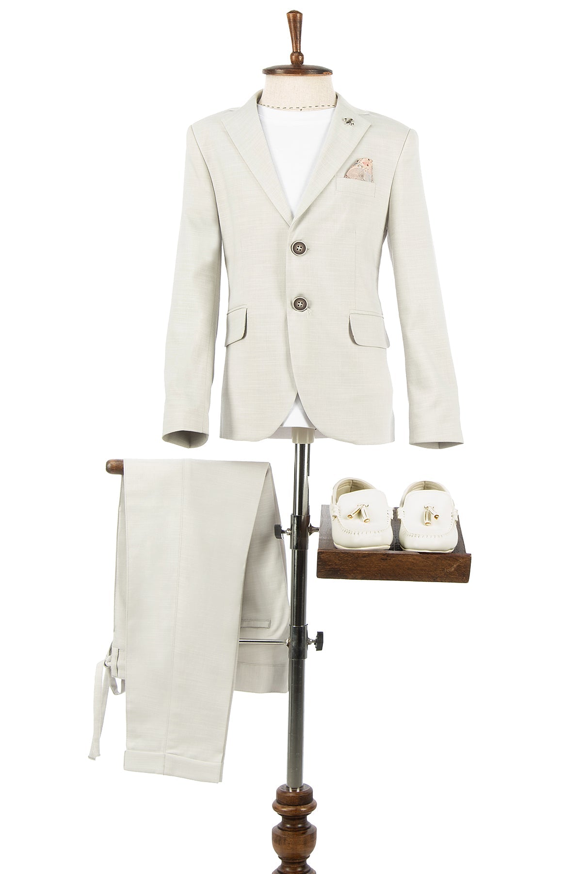 Açık Gri Keten Dokulu Çocuk Takım Elbise – 1-14 Yaş Yazlık Şıklık