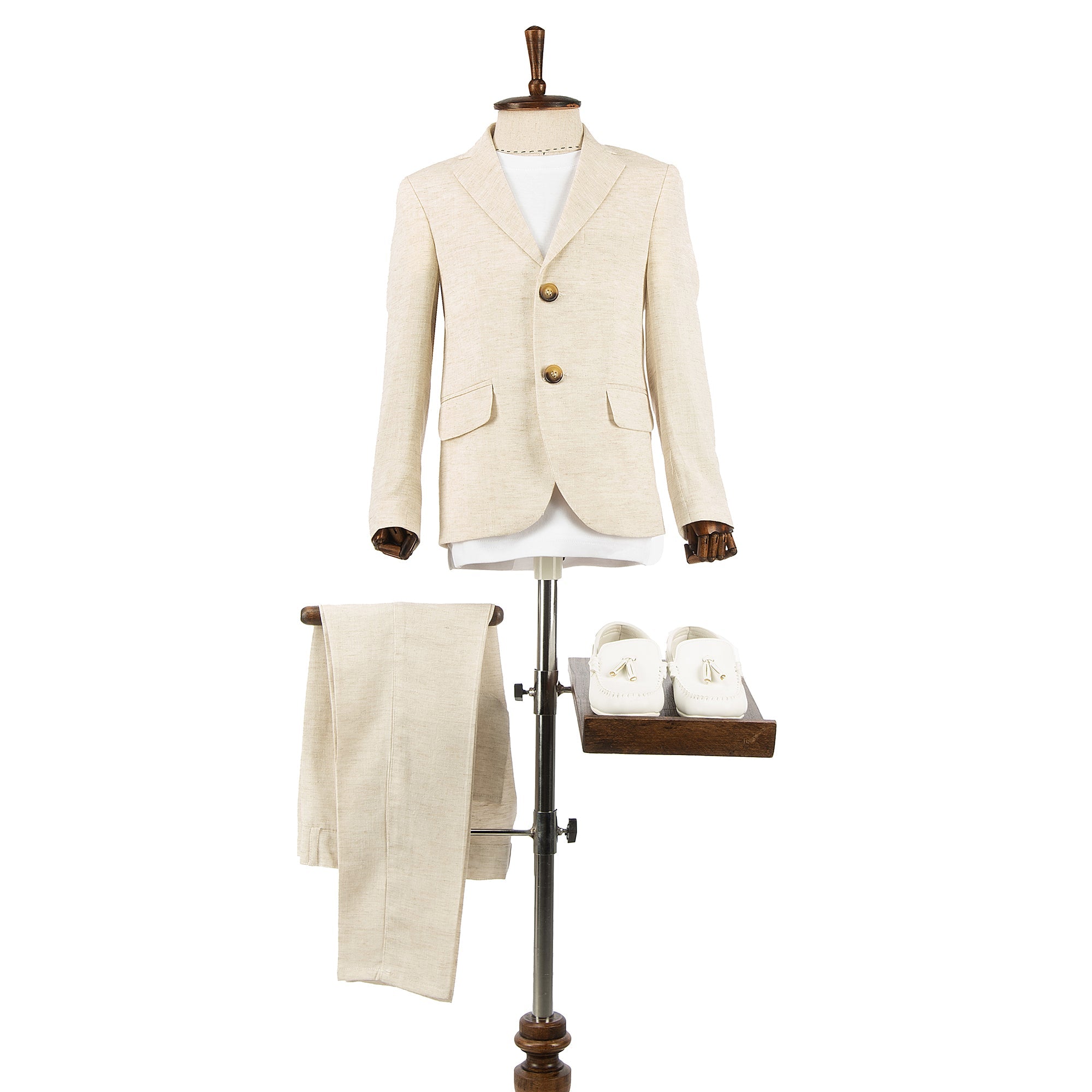 Bej Renkli Keten Çocuk Takım Elbise – Aslı Türkoğlu Kids Atelier