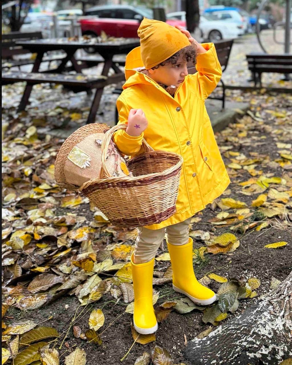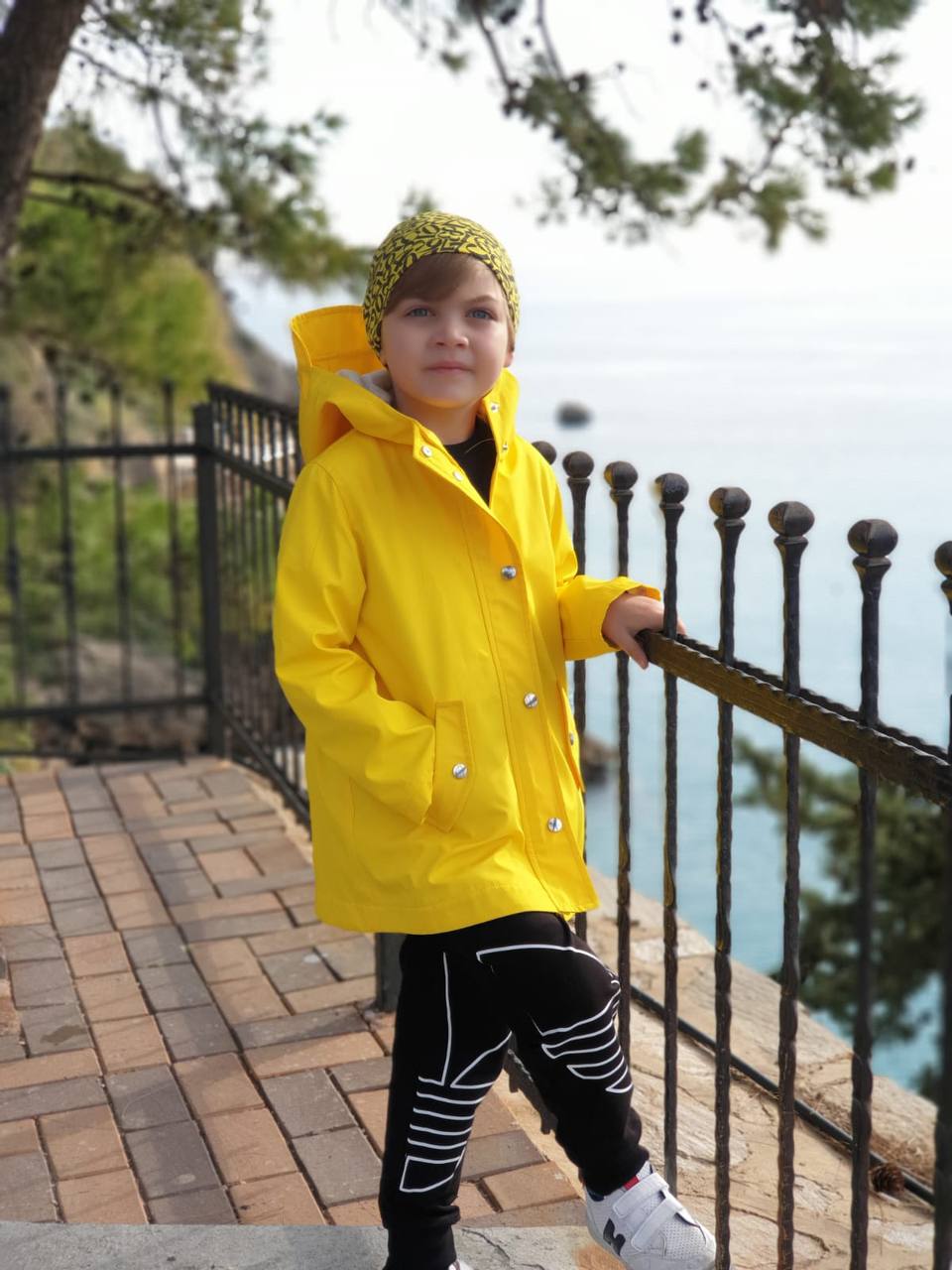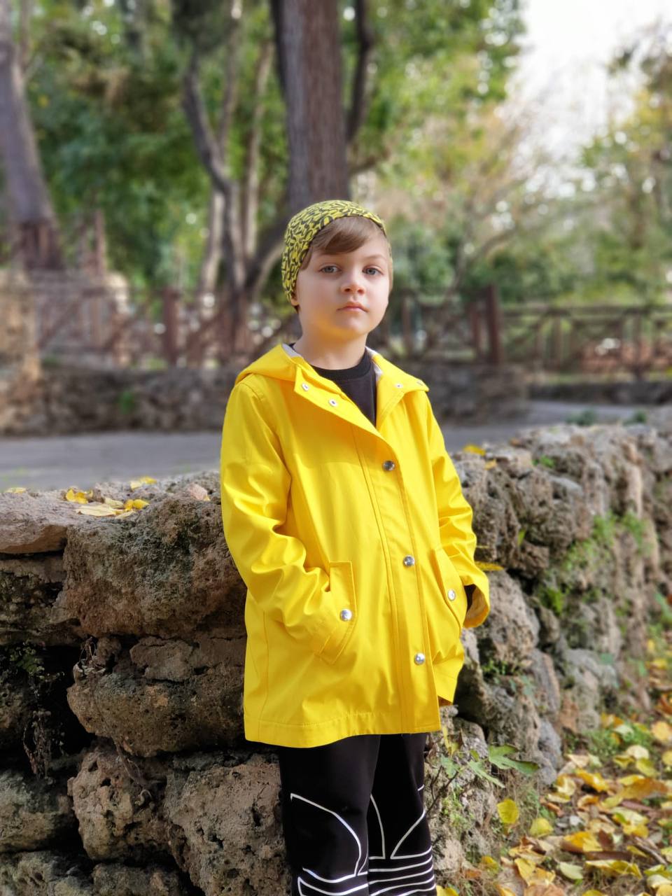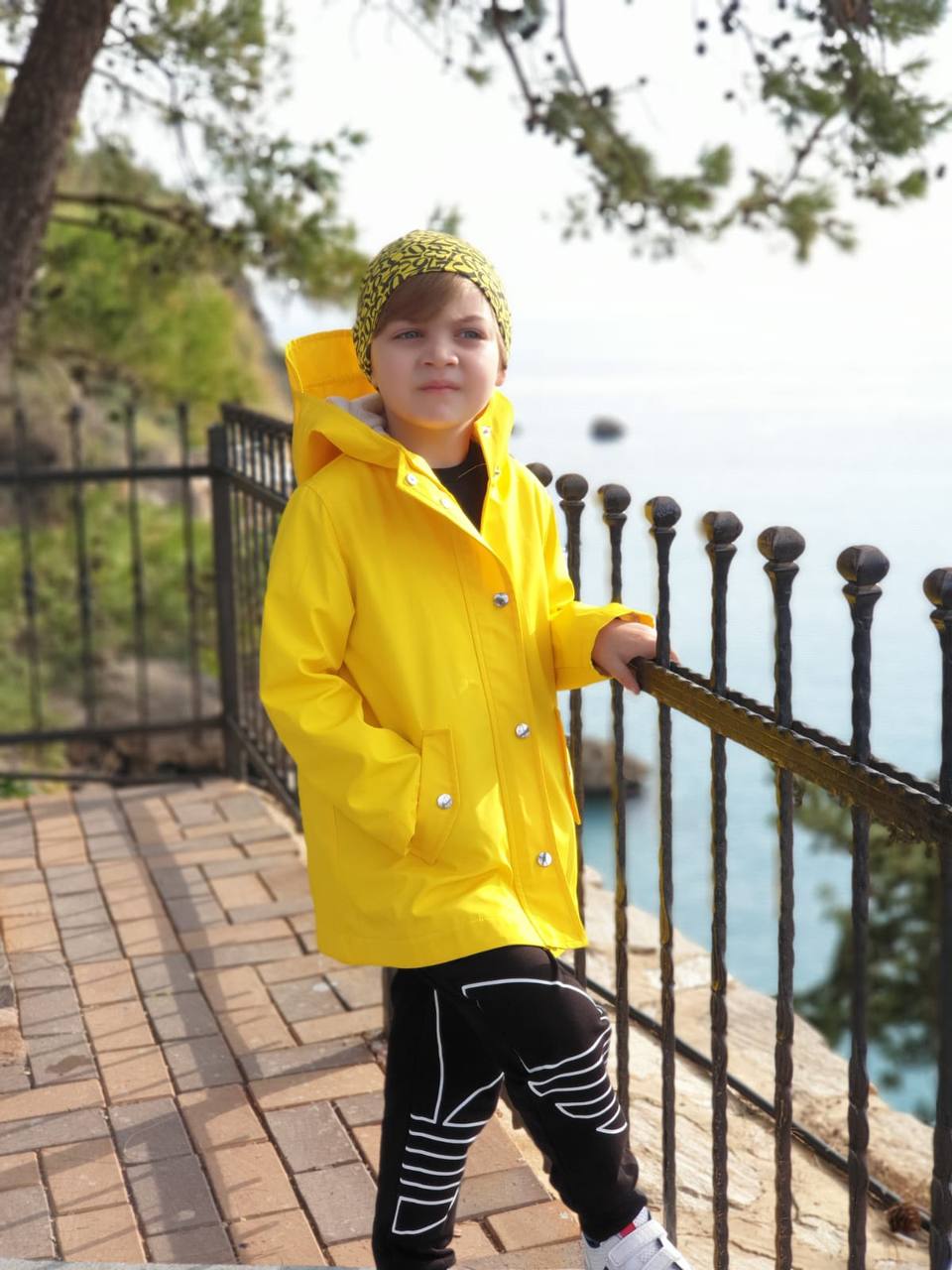 Çocuk Sarı Yağmurluk – Su Geçirmez Kapüşonlu Mont (2–10 Yaş)