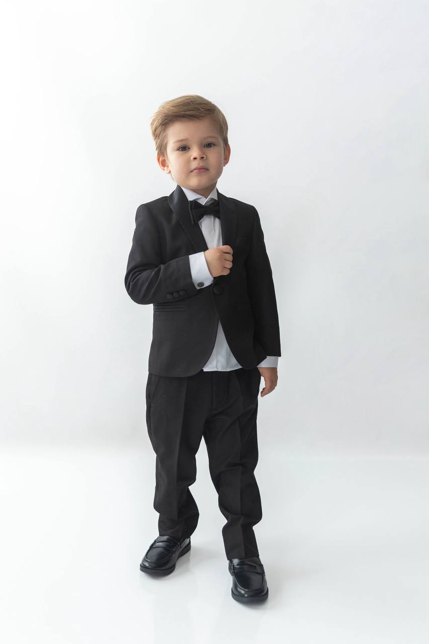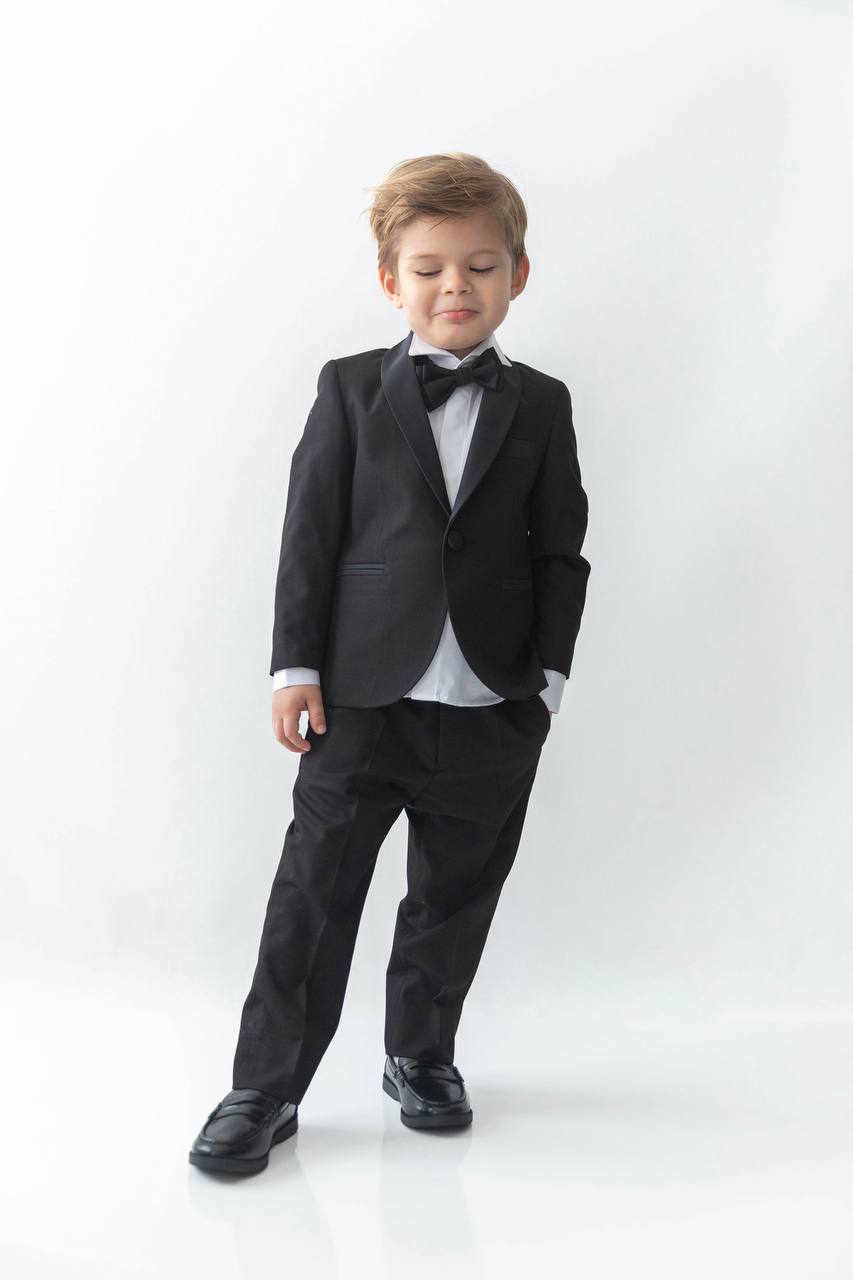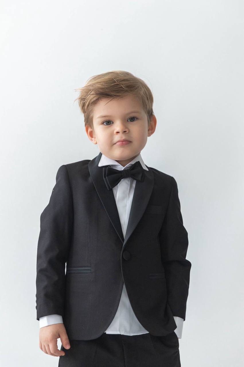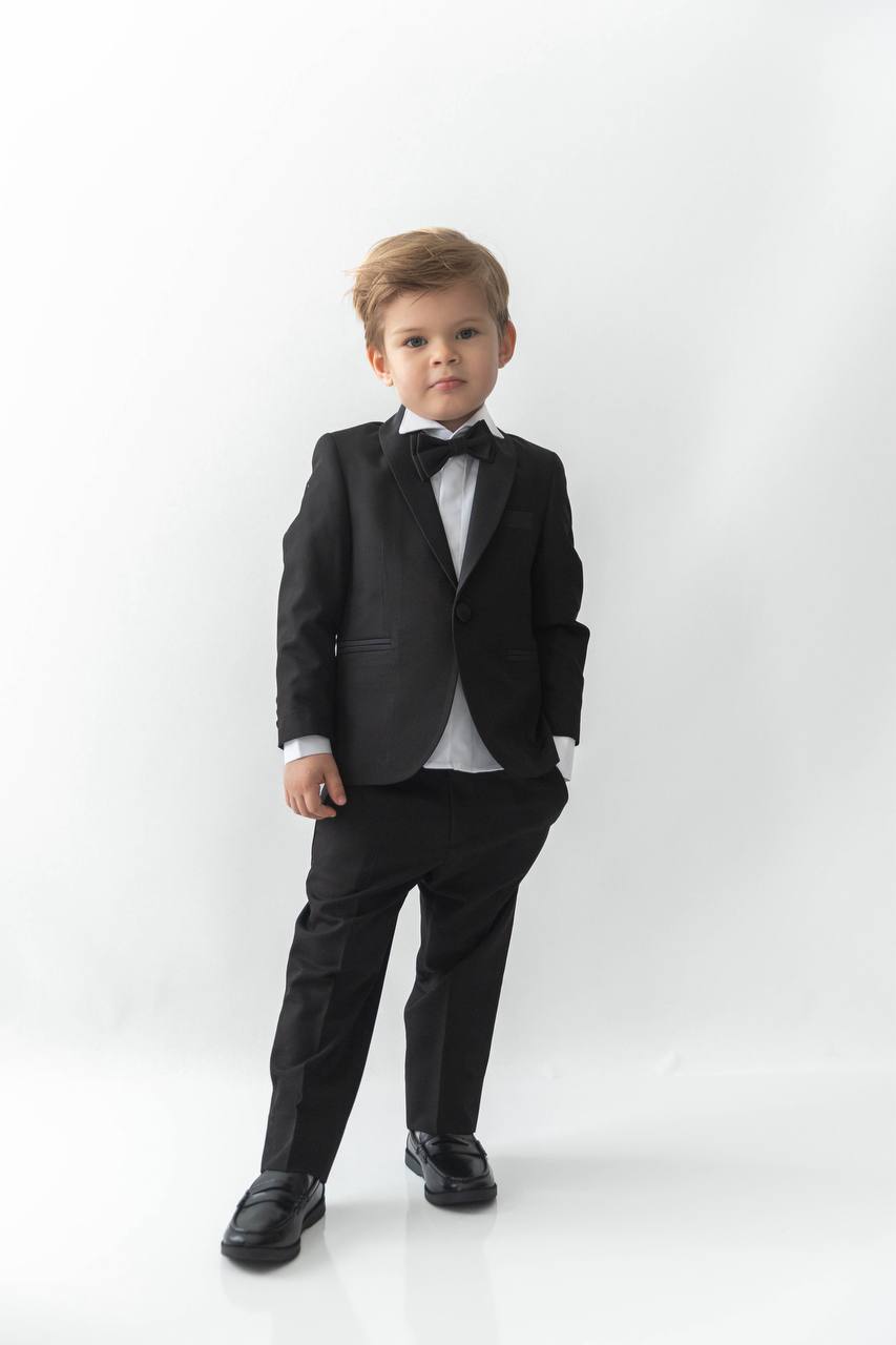 Çocuk Siyah Smokin Takım Elbise (1–14 Yaş) – Ceket Pantolon Gömlek Papyon