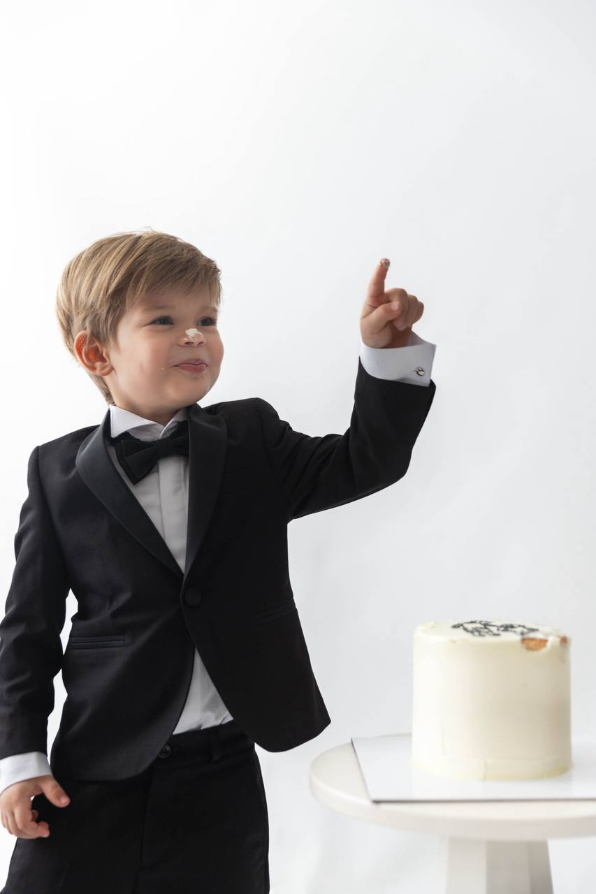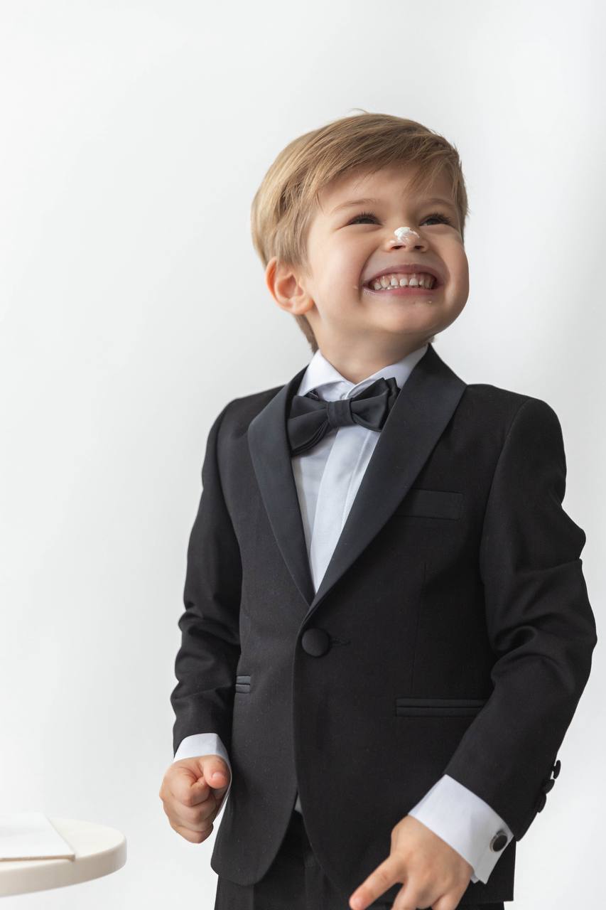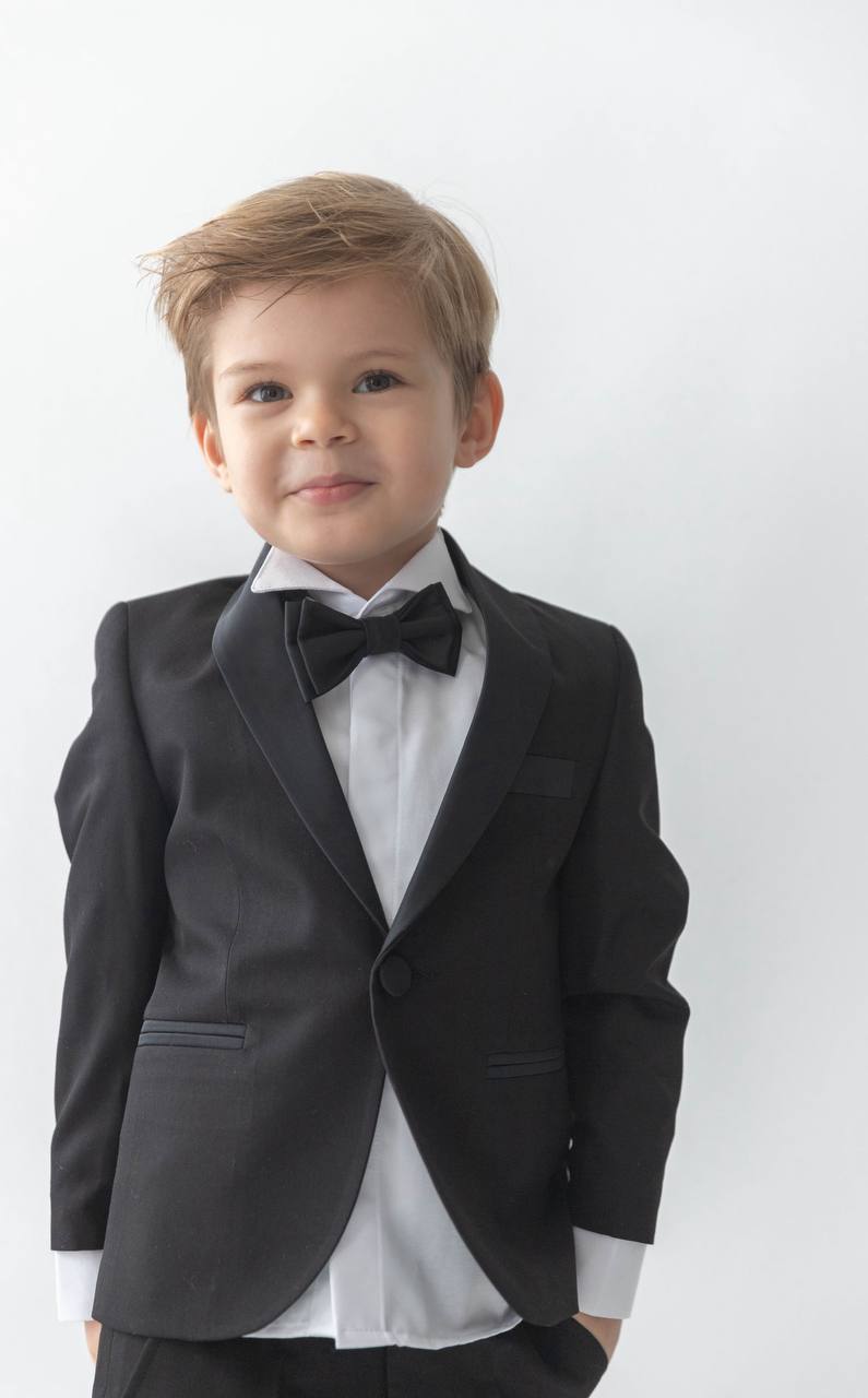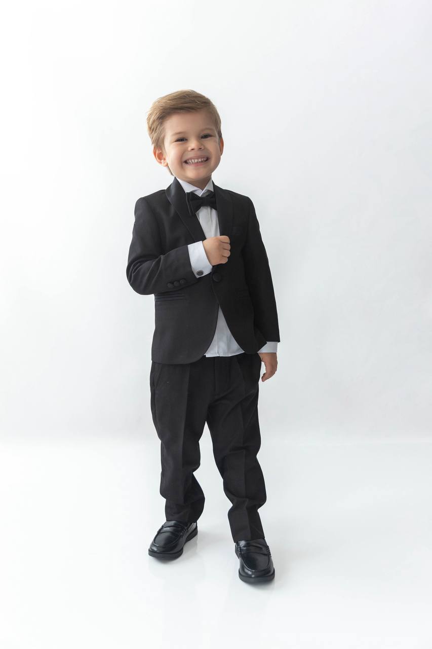 Çocuk Siyah Smokin Takım Elbise (1–14 Yaş) – Ceket Pantolon Gömlek Papyon