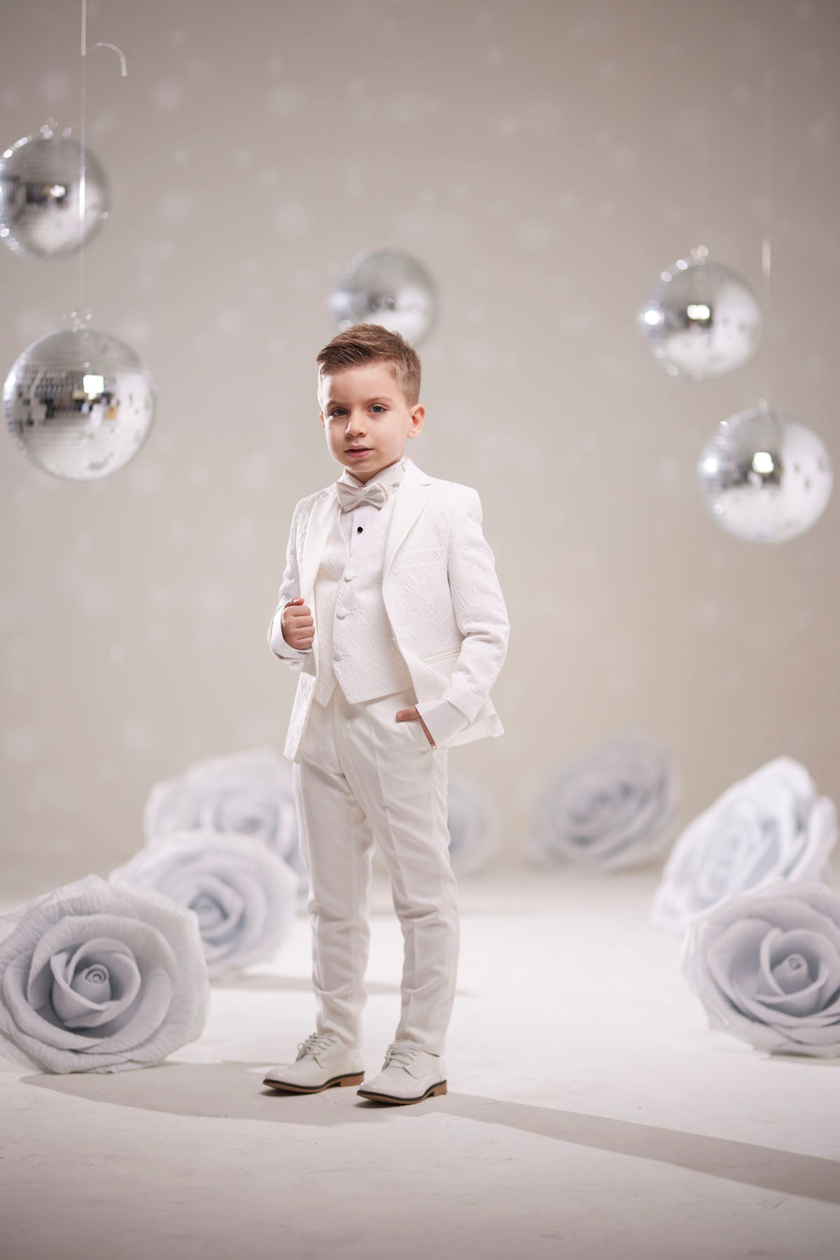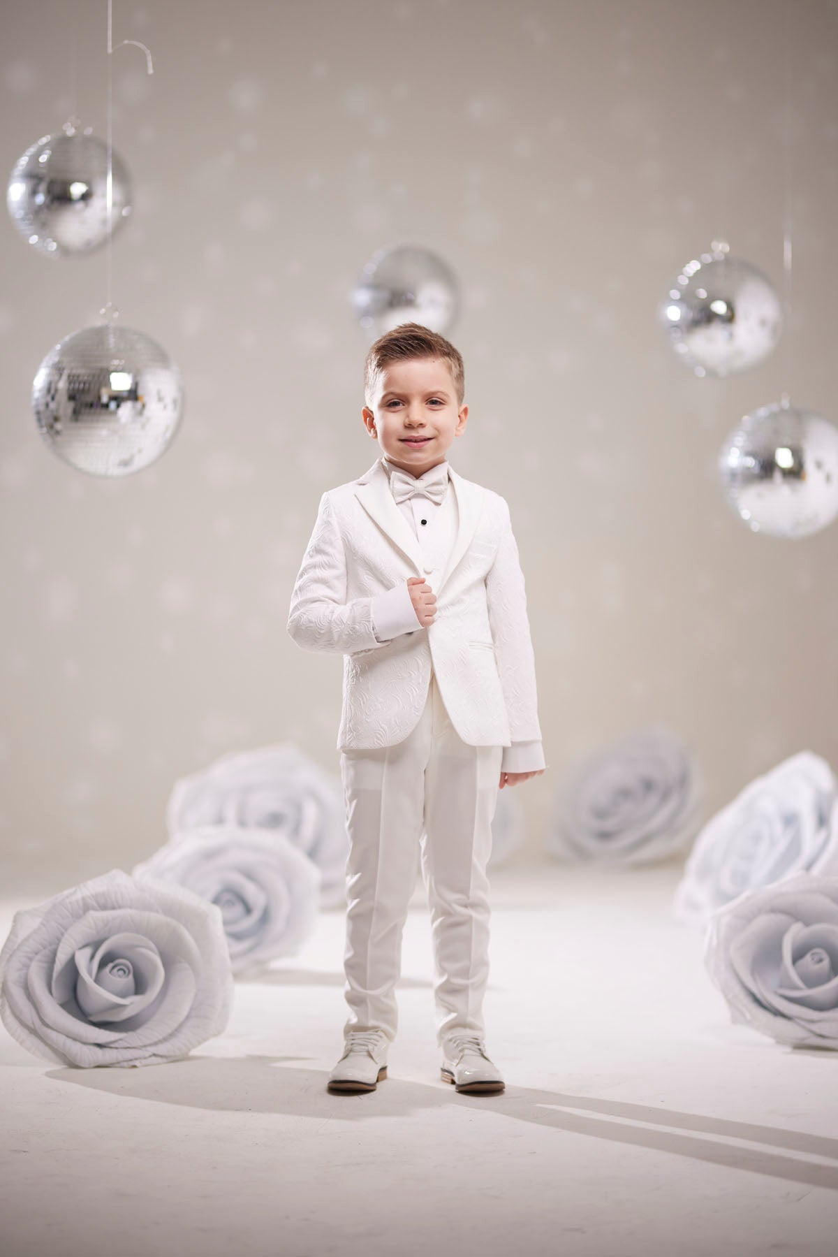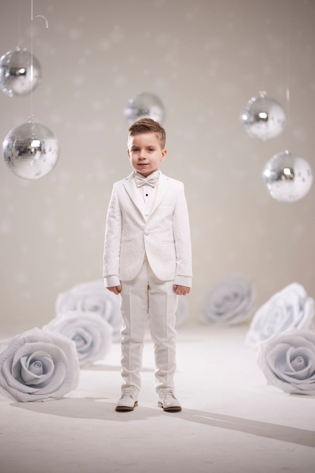 Aslı Türkoğlu Kids Atelier imzalı beyaz çocuk smokin takımı; komünyon, düğün, doğum günü ve mezuniyet gibi özel günlerde tertemiz ve sofistike bir görünüm sunar. Modern çocuk kalıbı ve dikkatli dikim detaylarıyla gün boyu rahatlık sağlar.</p>