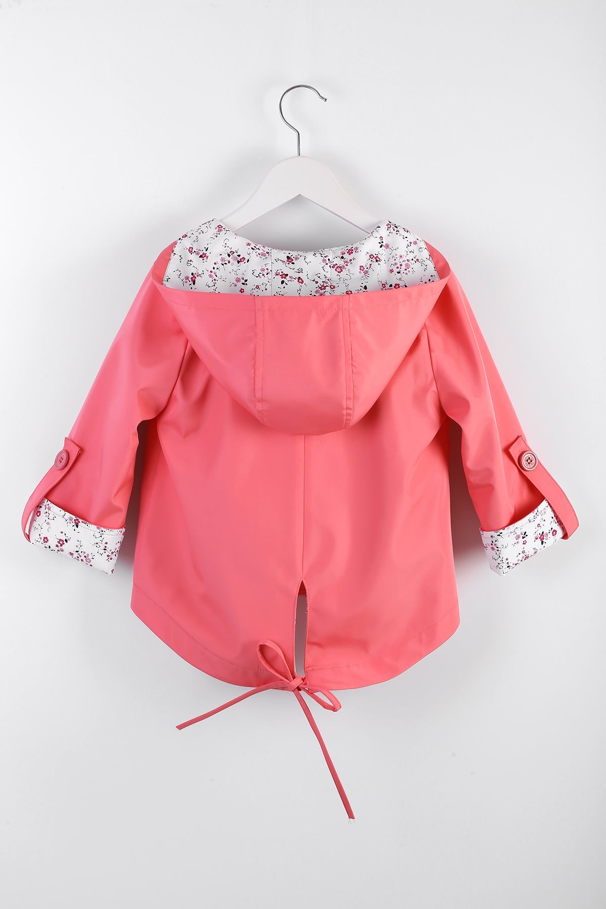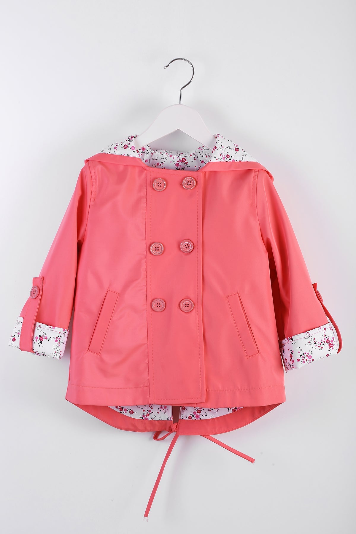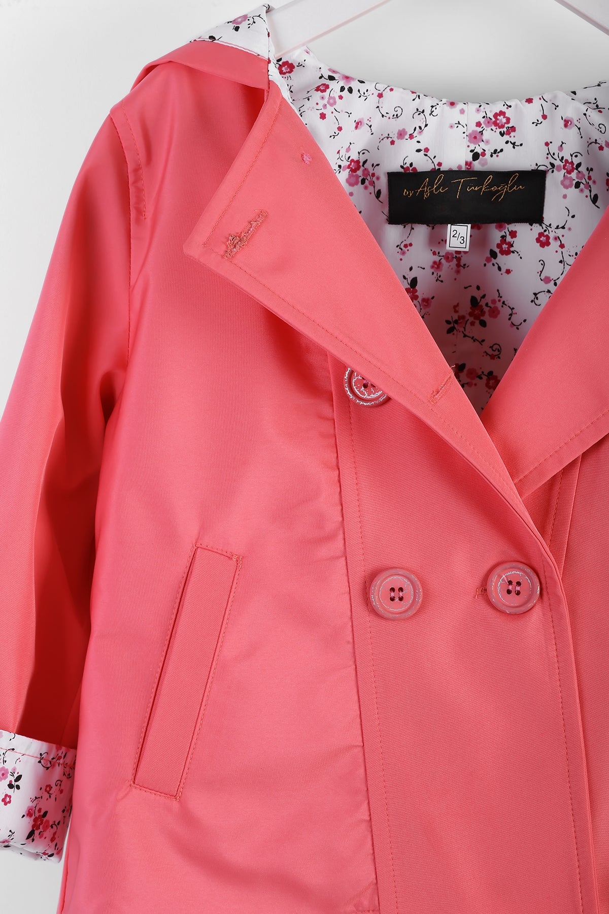 Kız Çocuk Çiçek Desenli Astar Detaylı Su Geçirmez Pembe Trençkot