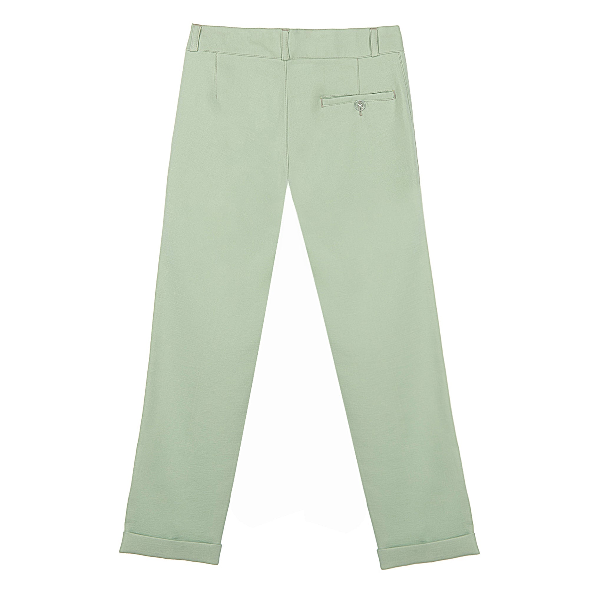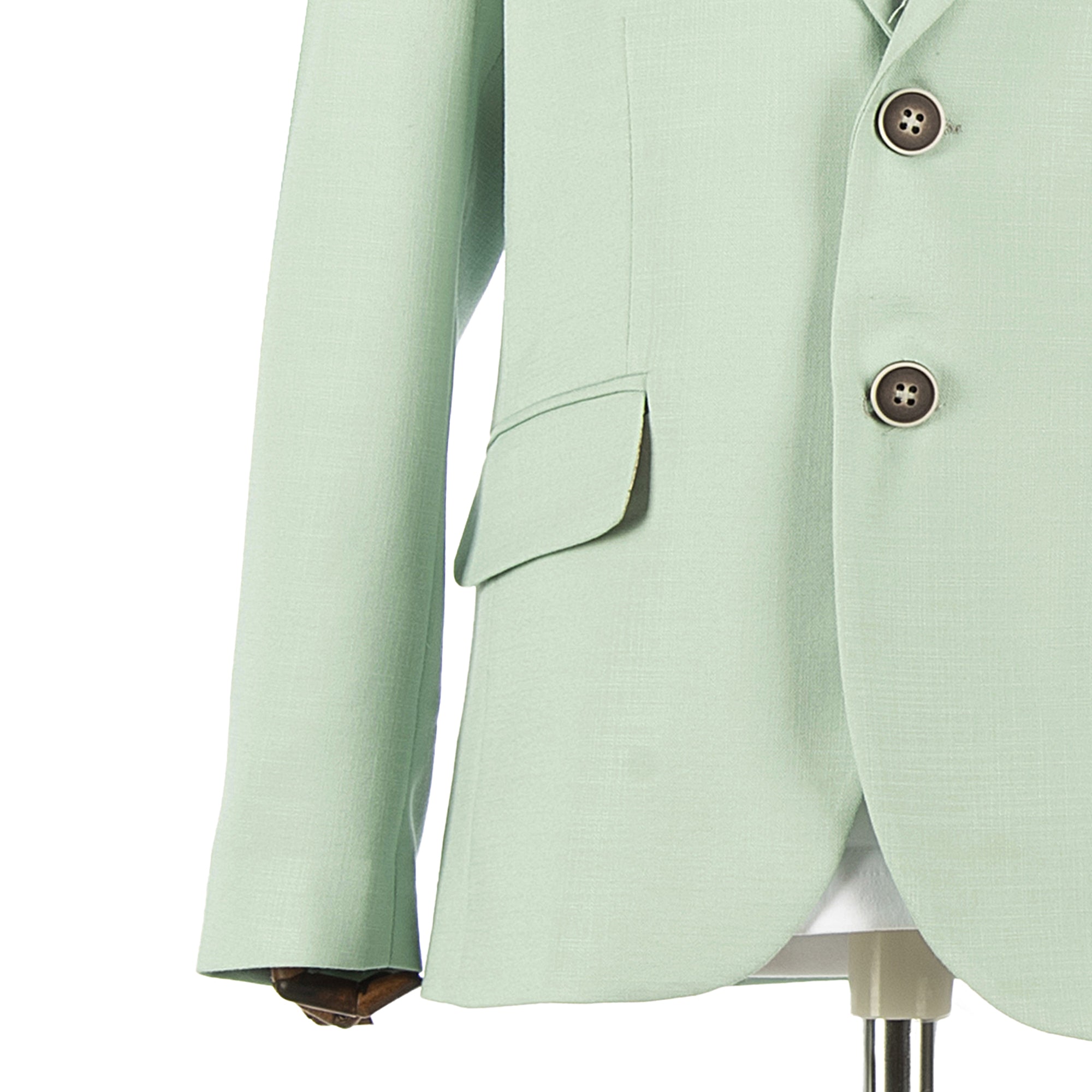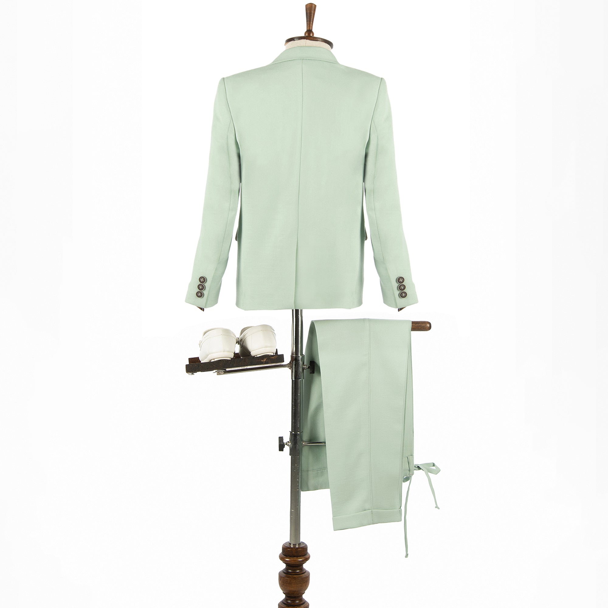 Aslı Türkoğlu Kids Atelier’in özel koleksiyonundan bu mint yeşili keten görünümlü çocuk takım elbise, sade tasarımıyla zamansız bir şıklık sunar.