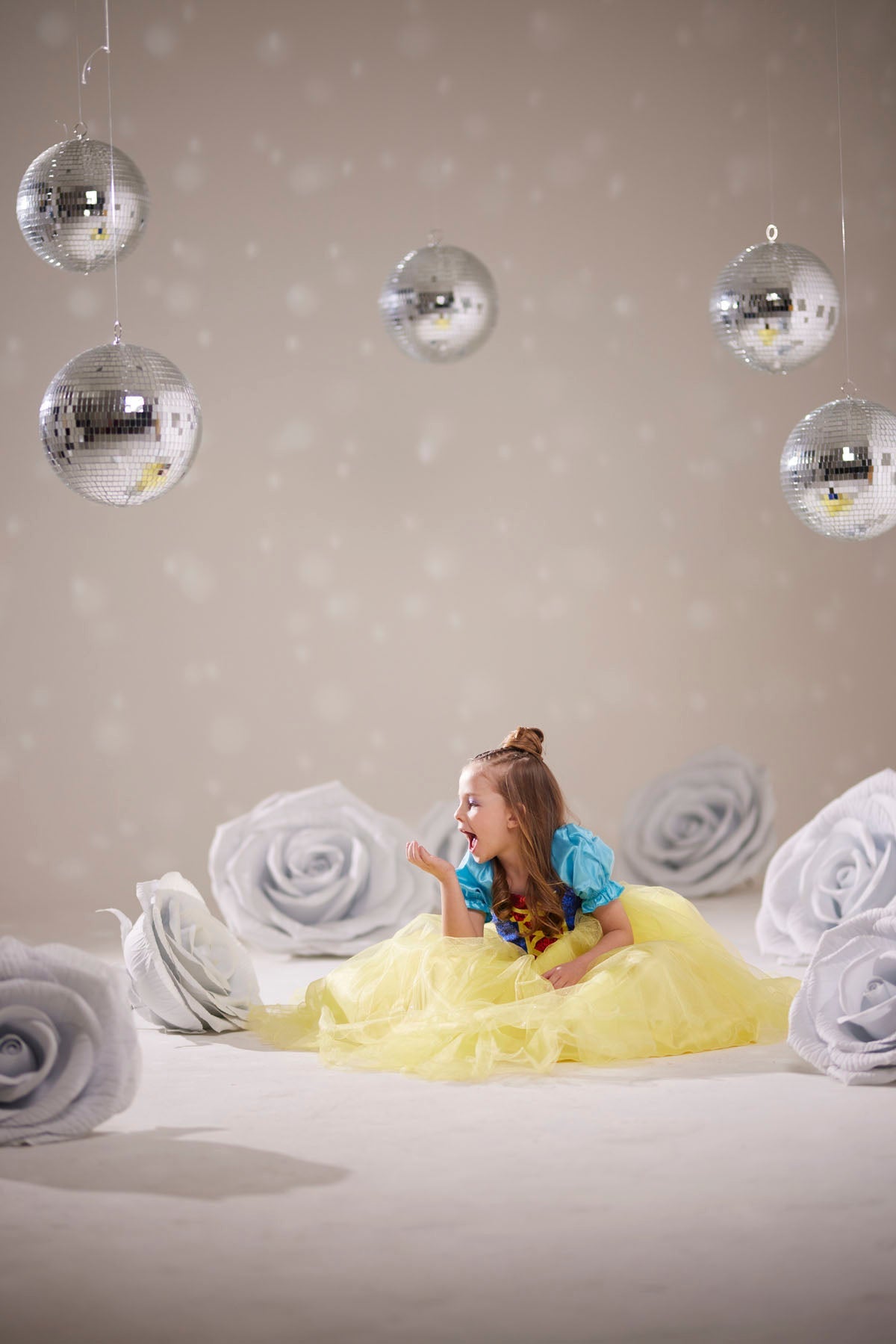 Masal temalı mavi kırmızı sarı prenses elbise – Aslı Türkoğlu Kids Atelier