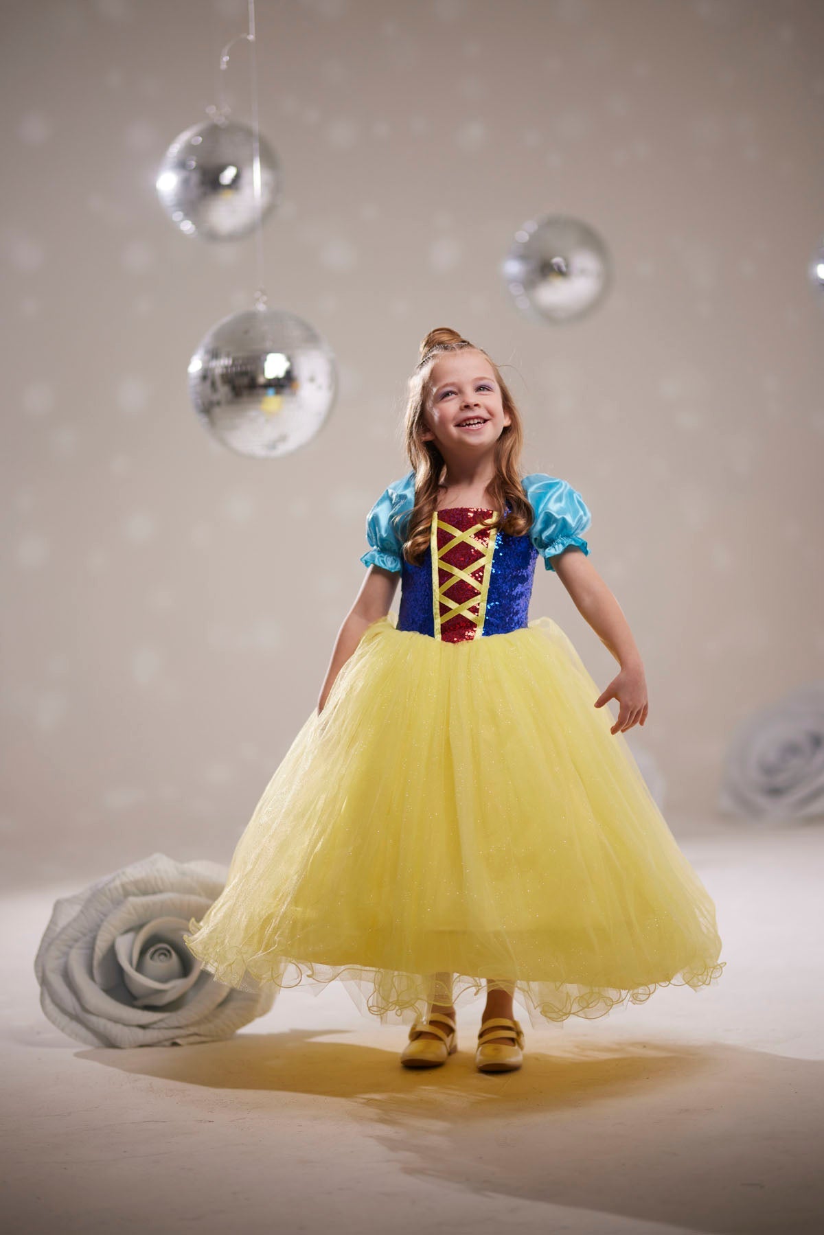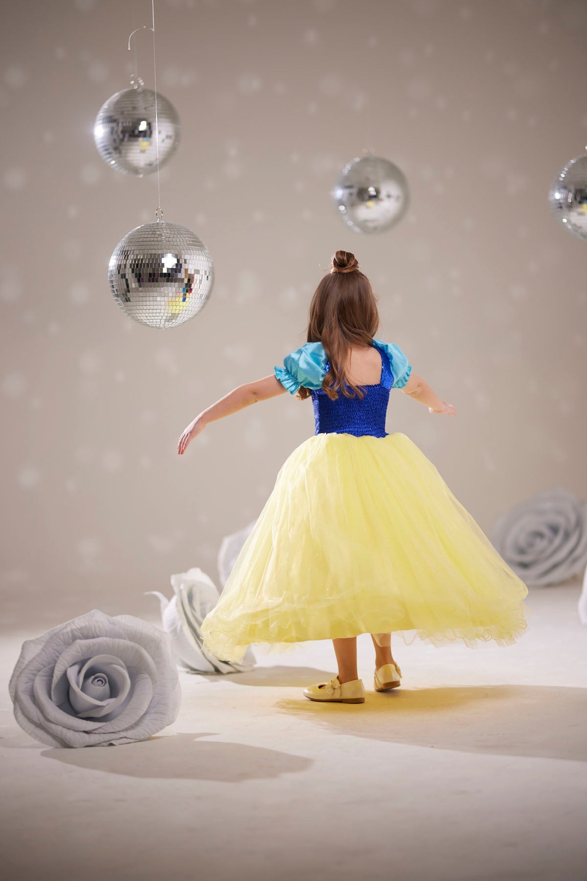 Kız çocuk pamuk prenses kostümü – sarı tüllü abiye elbise 1-8 yaş