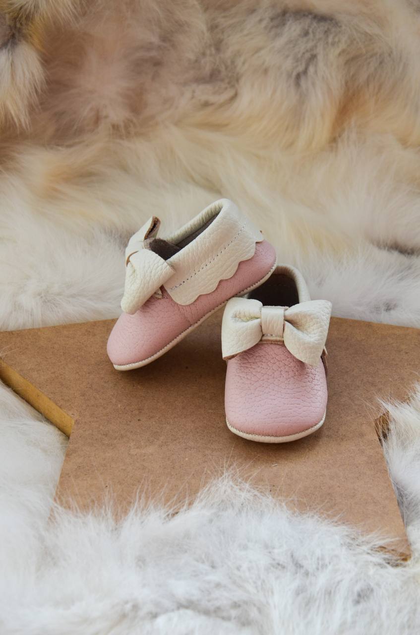 El Yapımı Gerçek Deri Pembe Bebek Makosen Patik