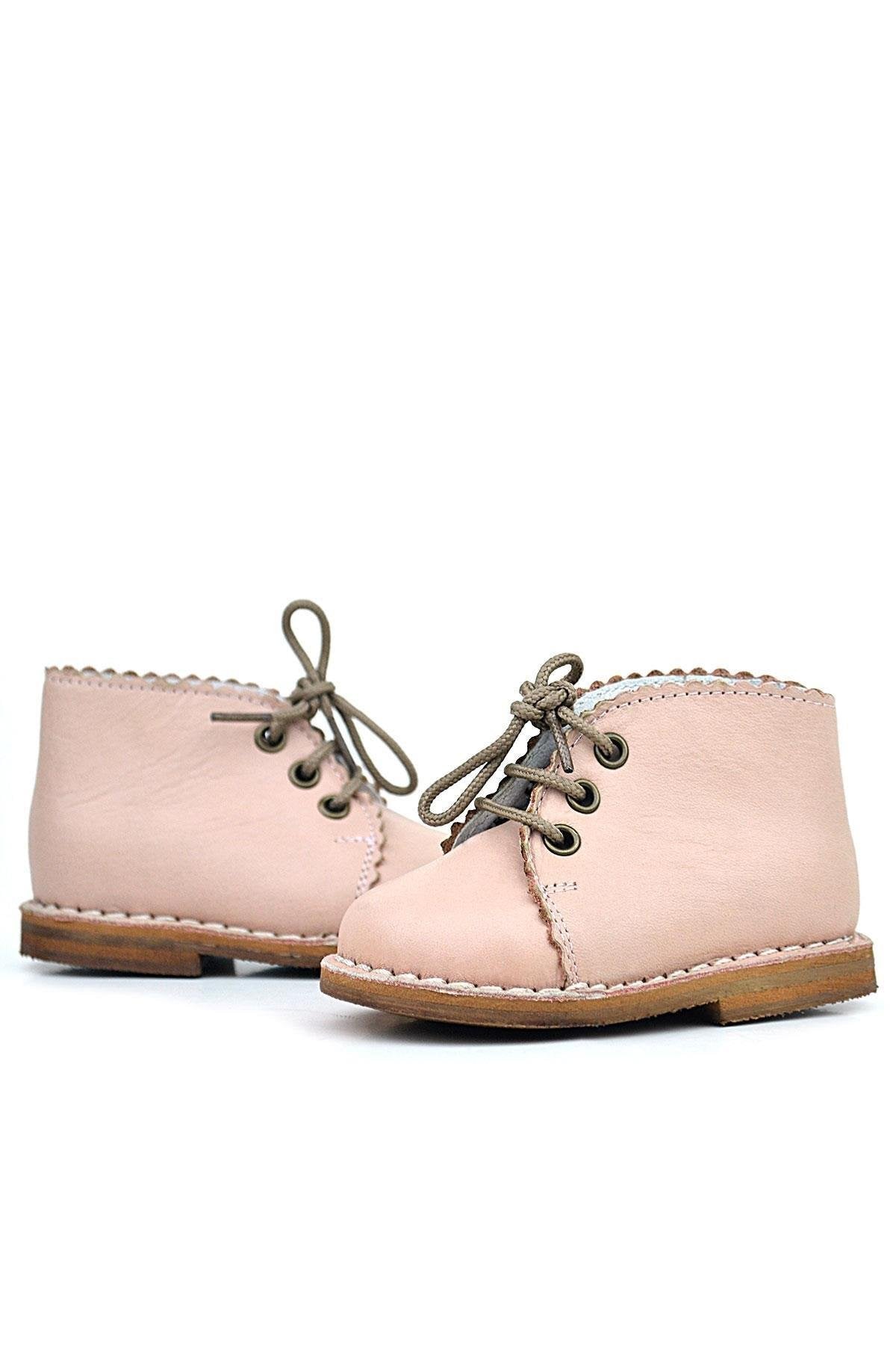 Minik adımlar için hem şık hem de konforlu bir seçim olan bu bebek botu, %100 gerçek deri malzemeden özenle üretilmiştir. Yumuşak yapısı, bebeklerin hassas ayaklarını nazikçe sarar, nefes alabilen deri sayesinde terlemeyi önler. Renk olarak pudra pembe tonuyla hem kız hem de erkek bebek kombinlerine uyum sağlar.