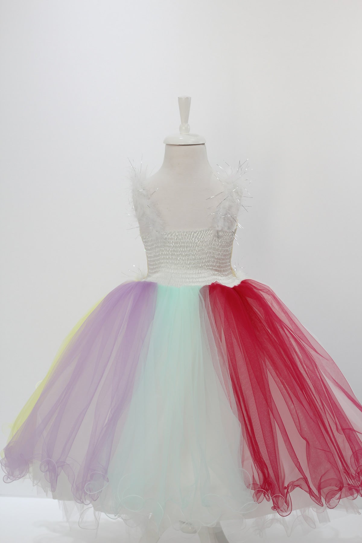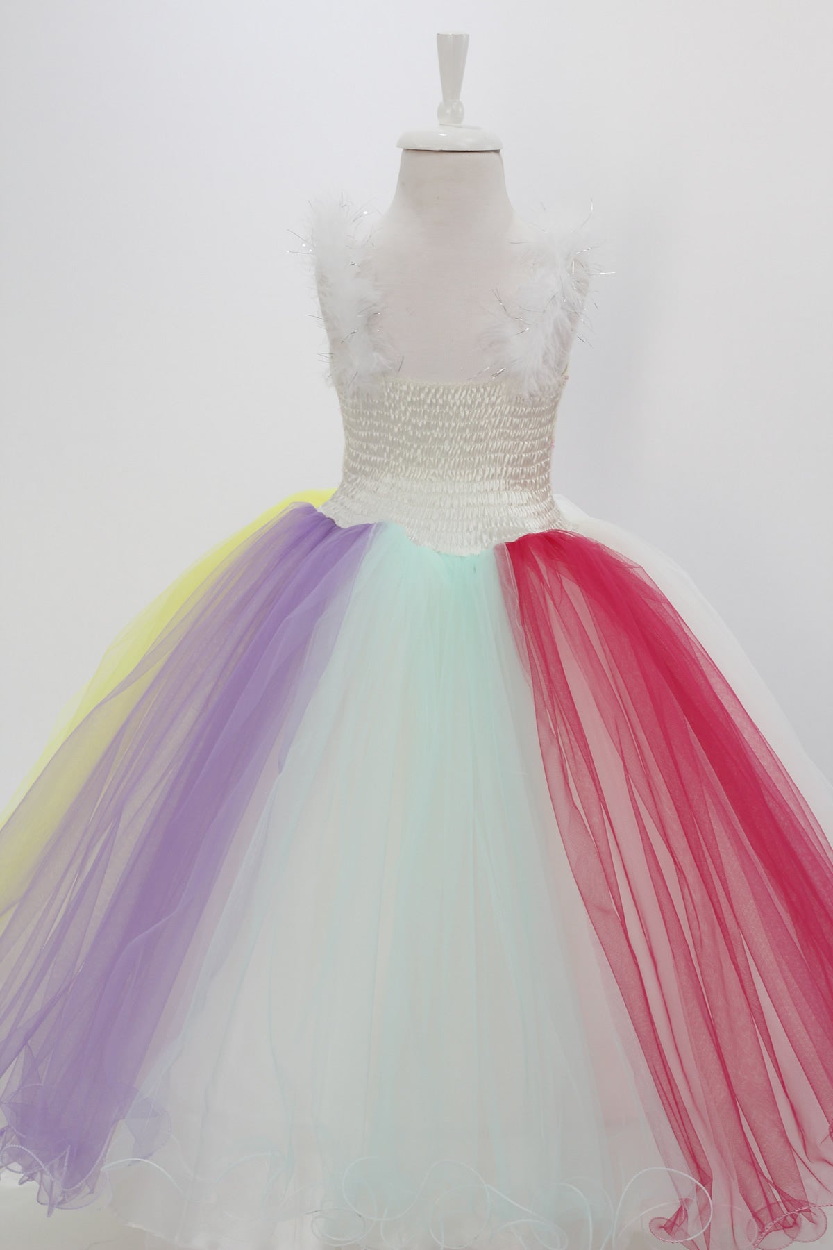 Çok katlı ve renkli hayal tül desteklidir.