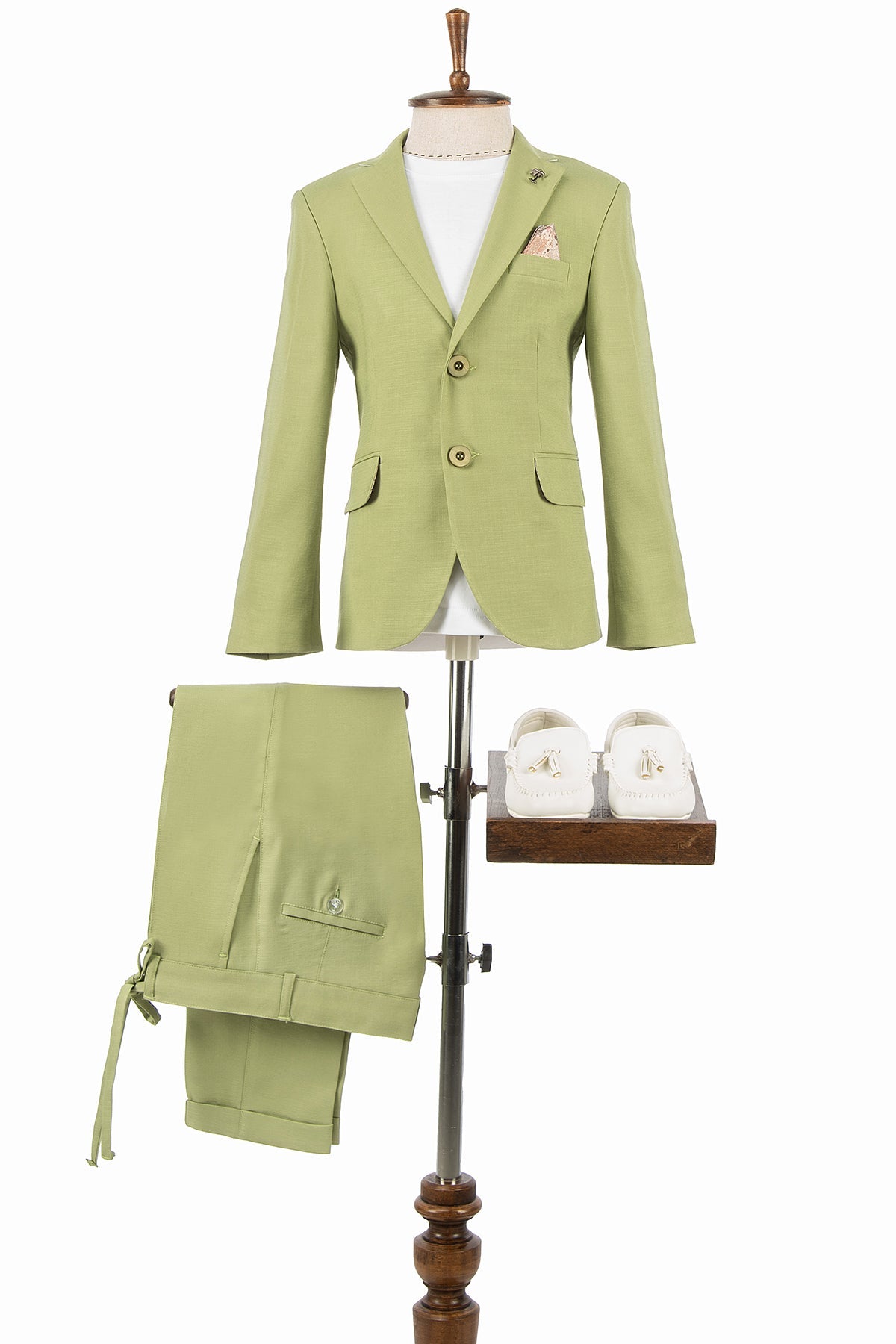 Yeşil Keten Dokulu Çocuk Takım Elbise – Yazlık Şıklık ve Konfor